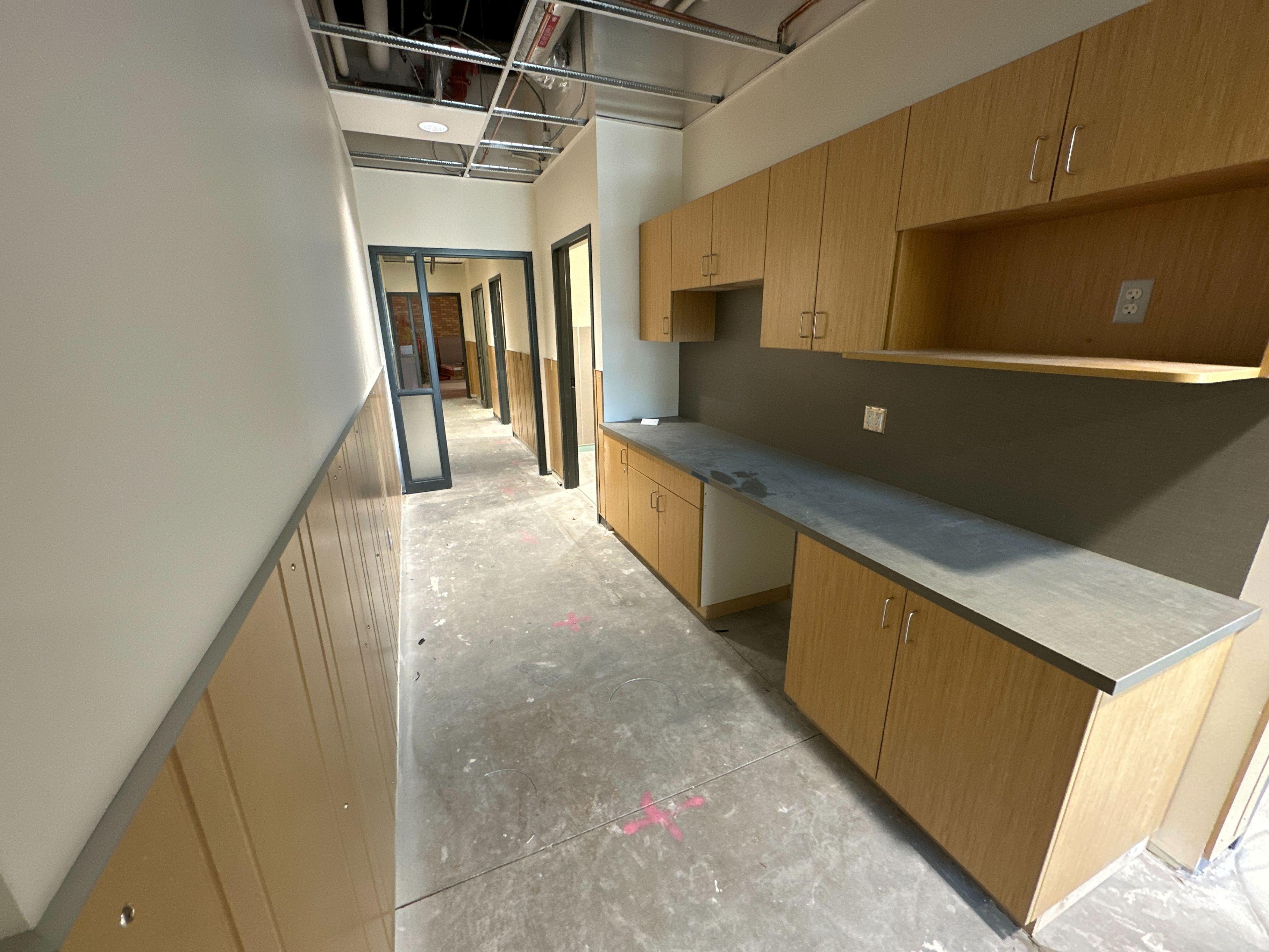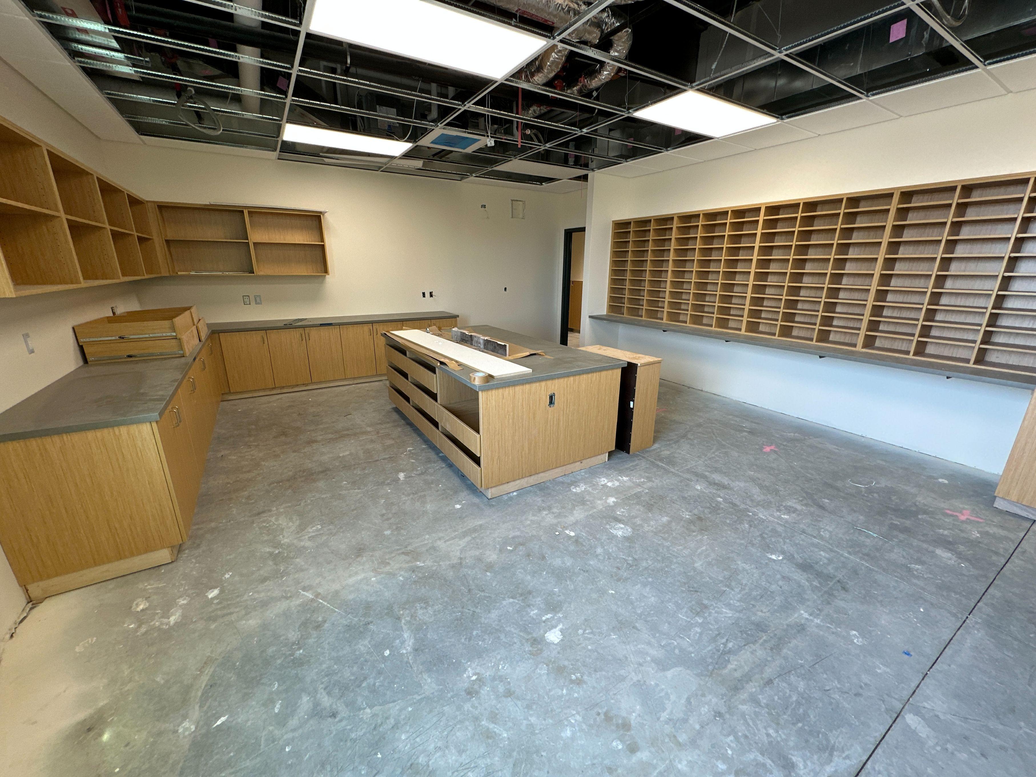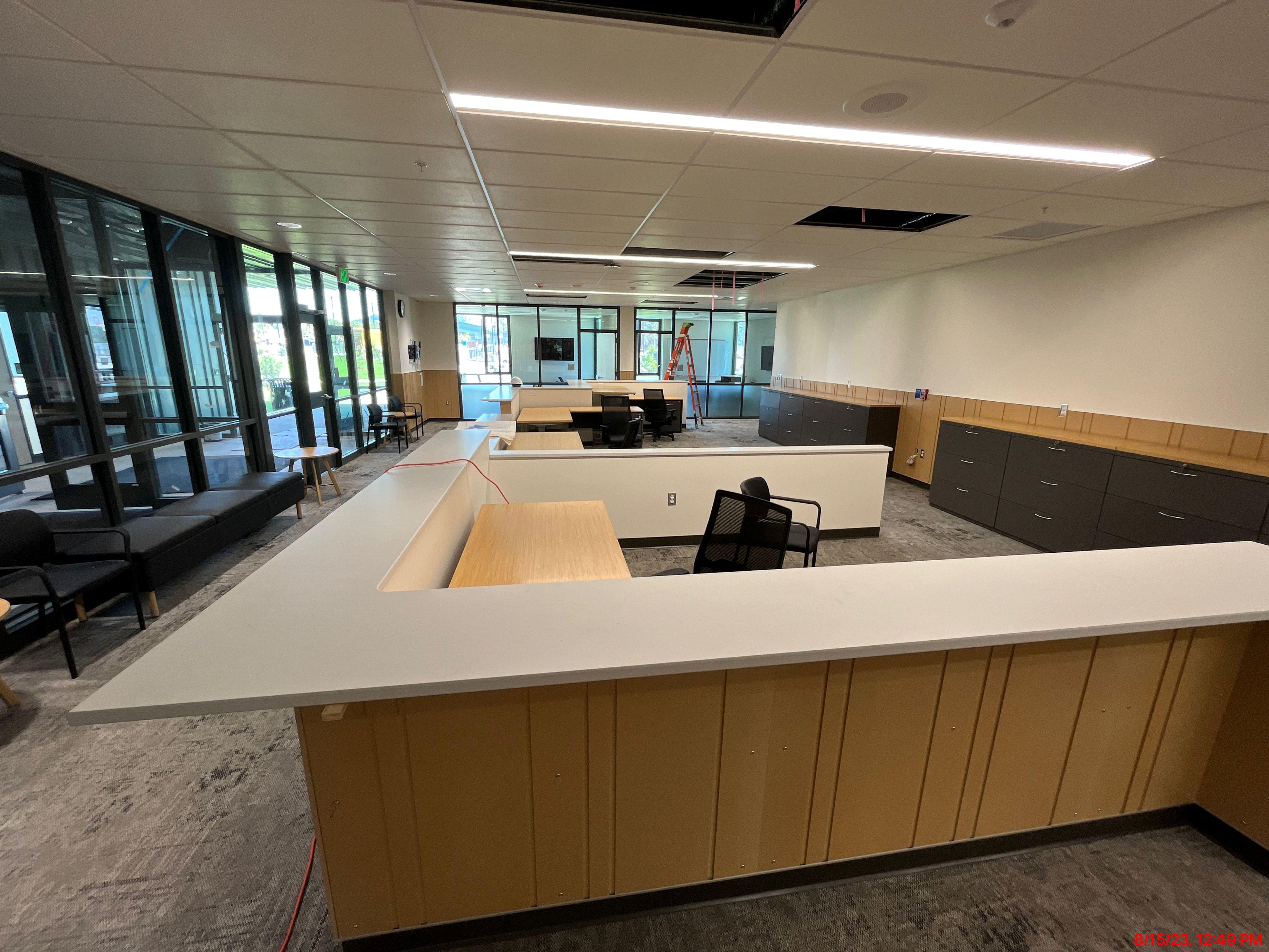 The solution was to spend the necessary time planning and executing precisely in order to meet restricted schedules and durations. The time permitted to install cabinets, wall panels, custom items like display cases and desks, became crucial and we were able to ramp up our production and custom shops in order to produce the items in a timely manner without sacrificing quality.