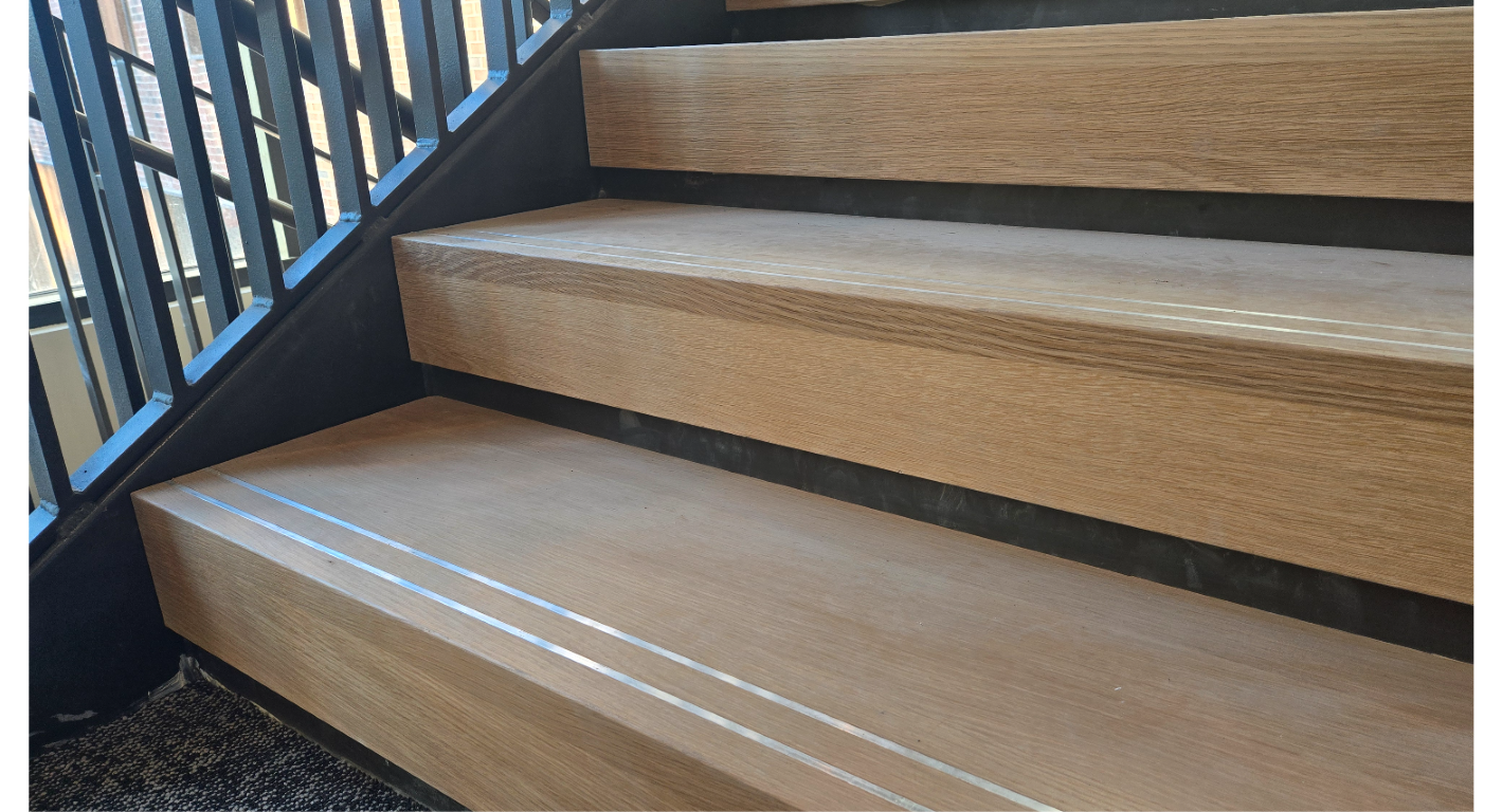 The end result highlights our team's ability to come together to find solutions prior to encountering them on-site. Even though this product, coupled with the stair treads, are not typical items we manufacture, it shows that our capabilities expand far beyond casework while maintaining the same quality and eye-pleasing results.